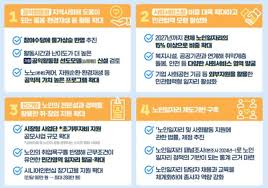 정부는 노인일자리를 확대하기 위해 다양한 정책을 시행하고 있습니다. 예를 들어, 2027년까지 노인 고용률을 10%로 증가시키겠다는 목표를 세우고 있습니다. 이를 위해 지역 기업에 대한 지원을 강화하고, 노인들이 일할 수 있는 환경을 조성하는 데 힘쓰고 있습니다.